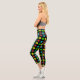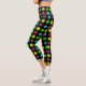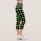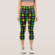 Pickleball Motif multicolore Capri Leggings avec un arrière - plan noir.