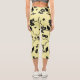 Leggings Capri Oiseaux en fleurs de cerises Noir sur Pla jaune ci