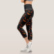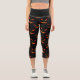 Personnalisez les légumineuses capri uniques et vêtements à la mode pour elle. Halloween cool et effrayant Jack O'Lantern face avec éclat orange et rouge. ©PLdesign Evil à l'air orange et jaune brûlant visage Citrouille sur noir. *photo de scintilles pas de parties scintillant réelle!