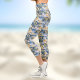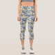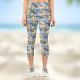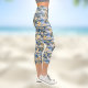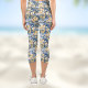Leggings Capri Tropical Hawaiin Yellow Hibiscus Flowers on Blue