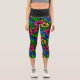 Leggings Capri Tropical rose rouge bleu jaune Hibiscus Fleur