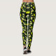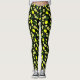 Jolie main dessinée à la main sur des leggings imprimés avec citrons jaunes estivaux, tranches de citron et feuilles verts sur motif noir