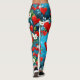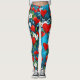Leggings Coeurs rouges et fleurs blanches bleu turquoise