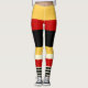 Des rayures répétées aux couleurs vives comme le jaune moutarde avec arrière - plan rouge foncé et noir. Essayez ces leggings et laissez vos commentaires.