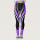 Abstrait violet blanc et noir leggings design avec des lignes courbes points et tourbillonner motif
