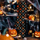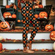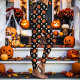 Leggings Crânes, citrouilles et fleurs d'Halloween noir