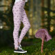 These cute leggings feature cute purple mushrooms in a pattern against light purple, sometimes described as lilac, background. This is great for someone who loves nature and cottagecore designs, and would look good in the yoga studio or under a tunic for fun.