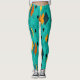 Ces leggings ont une conception atomique moderne du milieu du siècle des diamants, et des éclats d'étoiles sur un champ de turquoise.