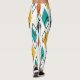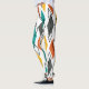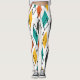 Ces leggings ont un design moderne du milieu du siècle de diamants en orange, jaune, turquoise, gris, et dessinés éparpillés sur un champ de blanc.