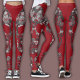 Leggings Edgy Skull Pattern | Grey Skulls on Red
