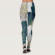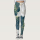 Leggings Elegant Leaves of Blue With Gold Lines Botanical