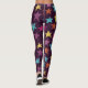 Des illustrations de style peint brillant et audacieux d'étoiles violet lilas, bleu turquoise clair, jaune, rose magenta et orange sont dressées contre un arrière - plan violet foncé sur ces leggings à motifs.