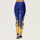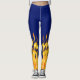 Flammes de feu orange orange moderne sur Leggings arrière - plans bleus. Le texte peut être personnalisé.
