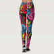 Un motif maximaliste audacieux avec des fleurs rouges, roses et bleues vives, des feuilles vert électrique et des accents gothiques gris recouvre ces leggings lumineux.