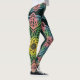 Une paire unique de jambières d'entraînement ou de pantalon de yoga pour femmes avec des mandalas à fleurs rétro sur couleur vert foncé.