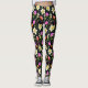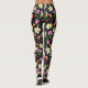 Des fleurs d'Imaginaire en magenta, blanc, orange et violet sur un arrière - plan noir créent une belle et élégante paire de leggings.