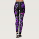 Motif de fleurs violettes gras sur une belle paire de leggings de haute qualité. Des fleurs violettes et des feuilles brillants viennent habiller ces leggings de mode uniques - parfait pour un voyage à la salle de sport, ou les habiller d'un blazer pour un décontracté chic de bureau. Élégamment polyvalent. Personnalisable dans votre choix de couleur arrière - plan ! Doux.