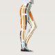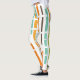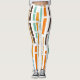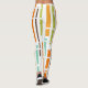 Ces leggings ont un design moderne du milieu du siècle de lignes verticales dans les années 1970 orange, marron, vert et bleu sur un terrain de blanc avec des lignes horizontales blanches les traversant.