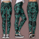 Leggings Noir & Sarcelle, présentant un motif damassé en spirale complexe à fort contraste.