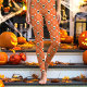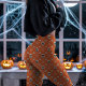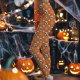 Leggings Motif de crânes et de fleurs d'Halloween orange