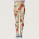 Jolies leggings floraux avec un motif de pavots rouges sur un arrière - plan neutre.