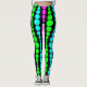 Ces leggings ont un design moderne du milieu du siècle de rectangles ronds rose, vert et bleu néon, de taille croissante et décroissante, tournés verticalement sur un champ de noir.