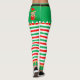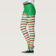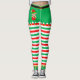 Joli elfe de Noël et doré look métallique sonnerie cloches sur des leggings rayés rouges, verts et blancs.