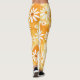 Joyeuses leggings floraux à motifs multiples avec marguerites pétales blanches de tailles aléatoires surplombant des blocs colorés diagonaux orange à or mélangés avec un motif de texture subtile - par katz_d_zynes