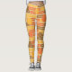 Ces leggings ont un design moderne du milieu du siècle de rectangles répétitifs en orange, or et marron avec des cercles superposés.