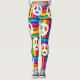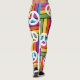 Ces leggings ont un design de carrés en rectangles dans les couleurs vives des années 70 avec des panneaux de paix qui s'éparpillent autour.