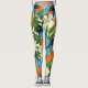 Leggings papaye tropicale et motif d'oiseaux.