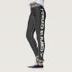 Ces jambières noires arborent les mots "Powered by plantes" en blanc toutes les polices casquettes, décorées de petits feuilles stylisés et de rayures blanches sur les deux jambes et sur la ceinture.