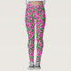 Leggings dans un motif d'eau rose fuchsia profond à pastel roses avec des feuilles dans les tons vert émeraude
