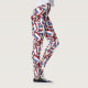 Ces leggings de volleyball amusants de fille ont un motif aléatoire de volleyball réaliste, stylisé rouge, bleu et blanc de différentes tailles tourné partout sur un arrière - plan blanc personnalisable - les panneaux rouge et bleu de volleyballs sont mélangés avec un motif kaleidoscopique floral artsy - par katz_d_zynes