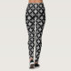 Leggings dans un Shippo japonais traditionnel, ou "sept trésors" motif de cercles entrelacés avec un motif de fleur central - fleurs dans les tons gris / gris avec un arrière - plan à motif noir et blanc