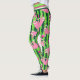 Coupe les paresseux roses sur l'arrière - plan de pastèque vert rayé. Ils se réveillent pour le pickleball. 🦥 Leggings avec motif de pickleball rose Bonne tenue et meilleurs voeux pour vos prochains jeux !