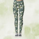 Leggings Teal Green Chinoiserie Tropical White Gold Floral