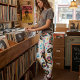 The Vinyl Groove leggings feature a repeating all-over print of vinyl records, neon jukeboxes, musical notes, and lightning bolt accents — all scaled carefully to maintain proportion when worn. This ensures the design flows naturally along the legs without stretching or distortion.