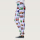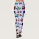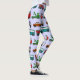 Ces leggings ont un design novateur de camions et de bus en rouge, bleu, vert et marron sur un champ de bleu clair.