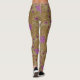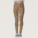 Leggings dans un vintage William Morris, Art Nouveau, marigold damassé imprimé de feuilles et de fleurs, numériquement rehaussés et colorés, dans les tons marron clair et beige, accentués de violet violet et rose, sur un arrière - plan marron chocolat foncé