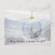 Une carte de Noël avec une église dans un ballon de noël en verre dans un paysage de montagne alpin blanc en hiver au pays des merveilles en Autriche avec le texte : 'Joyeux Noël et Bonne Année ! '