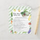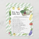 "Un bébé local est en route". Célébrez avec cette fête de baby shower à thème potager d'aquarelle ! Aquarelle concombre, oignon, aubergine, courgettes, tomates jaunes et rouges, radis, carottes, poivre chaud, poivre jaune doux, pois et chou, brocoli et betterave sur une planche à découper. Aquarelle de récolte biologique.