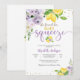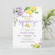 Celebrate love and friendship with this elegant lemon floral bridal shower invitation. Featuring vibrant yellow lemons and delicate purple flowers, this design blends rustic charm with modern sophistication. Perfect for summer bridal showers, it sets the tone for a cheerful and stylish gathering. Customize with your details to create a memorable keepsake that guests will adore.