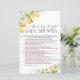 Le produit Lemon Citrus Baby shower Survey dit Game Card est non seulement un jeu amusant, mais aussi une belle pièce décorative pour l'atmosphère de fête Babay Shower, aidant chacun à créer des moments mémorables ensemble!