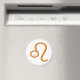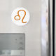 Le design présente le signe zodiaque Leo en orange avec "leo" écrit dans la boucle.