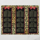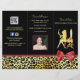 Un salon de coiffure glamour triple liste de prix flyer avec une femme portant une couronne d'or. L'arrière - plan est décorée d'un empreinte de léopard noir et or tendance et d'un arc rouge ceinturé. Impression plane, PAS métallique.