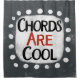 "Chords Are Cool" est un design de texte mignon en gris avec du texte en noir et rouge, avec une forme d'accent blanc et des points blancs blancs et blancs.