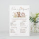 Le design du baby shower d'animaux de la forêt boisée est une magnifique et charmante représentation du monde naturel. L'utilisation de tons doux et terreux crée une atmosphère chaleureuse et accueillante, parfaite pour accueillir les clients dans un baby shower à thème boisé. Le design présente d'adorables amis animaux tels que l'ours, le lapin, le hérisson et le renard, tous rendus dans une belle aquarelle. Une touche particulièrement charmante est le renard qui traverse les lettres, ajoutant un élément ludique et fantaisiste au design. Les verdure, les marron et les gris utilisés dans le design évoquent un sentiment de nature et de plein air, rappelant la sérénité paisible de la forêt. Des articles adaptés sont disponibles.