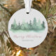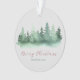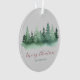 Ce ornement d'arbre de Noël de forêt sauvage verte est parfait pour une fête de Noël rustique et joyeuse. Le design comprend une aquarelle verte, des pins sauvages.