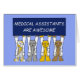 Quatre chats de dessins animés portant des manteaux blancs et tenant une pancarte bleue qui dit "les assistants Médicales sont géniaux".